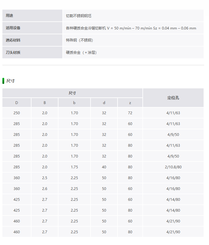 具有优良的耐熔敷性和耐磨损性,在切割不锈钢时由于涂层的使用而能够大幅度提高使用寿命。具有稳定的使用寿命及良好的切割品质。